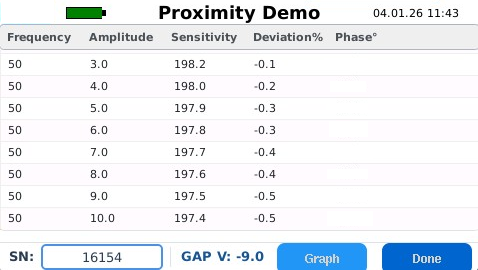 Table View of Proximity Probe Automatic Test