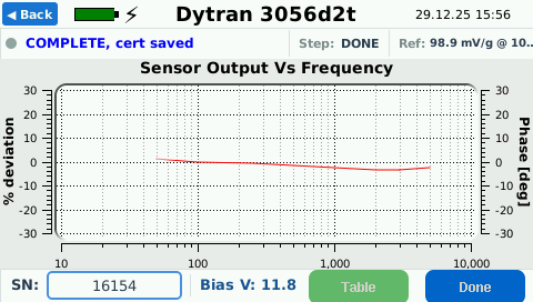 Table View of Dytran Sensor Test